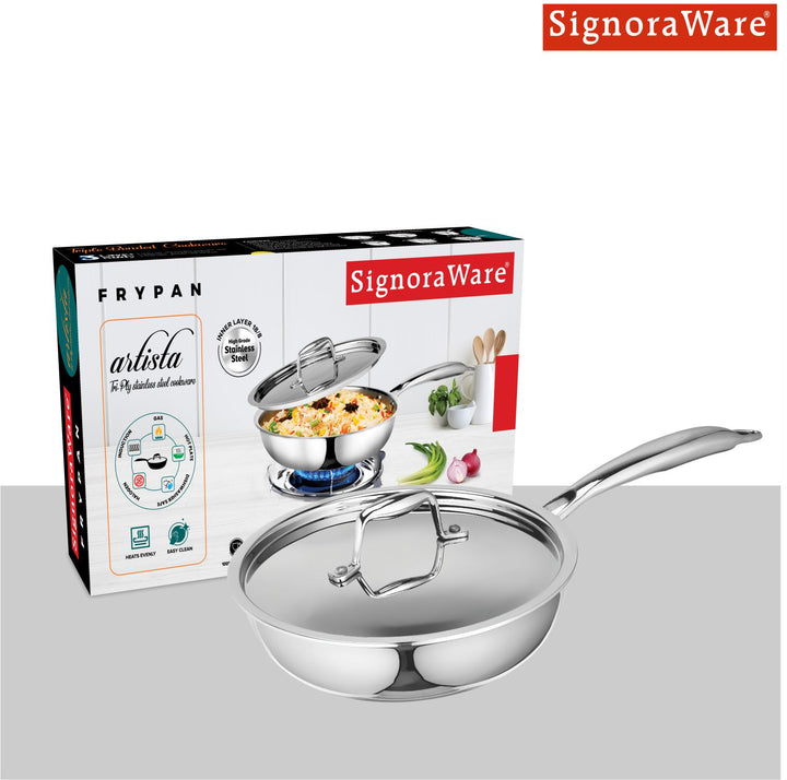 Artista Tri-Ply Frypan with Steel Lid (Induction and Gas compatible) 18cm. / Capacity 850ml.