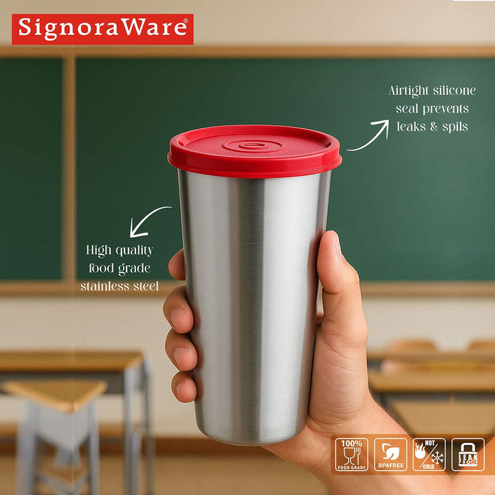 Tumbler (Steel) 420 ml. |Drinking Cup | Reusable Travel Tumbler With Leakproof Lid | To-Go Drink Cups for Juice, Smoothie, Iced Coffee, Milkshake, Cold Drinks & Snacks