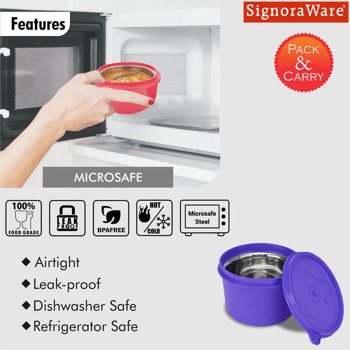 - Microwaveable Leak proof containers with Steel Inner