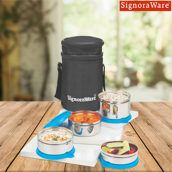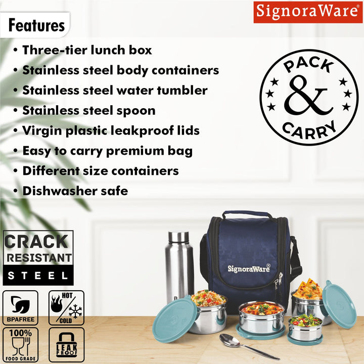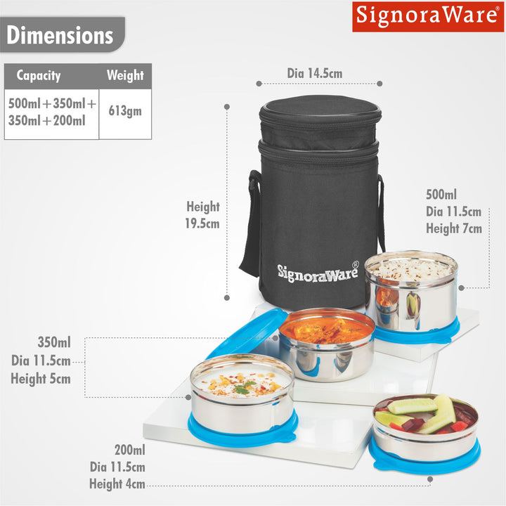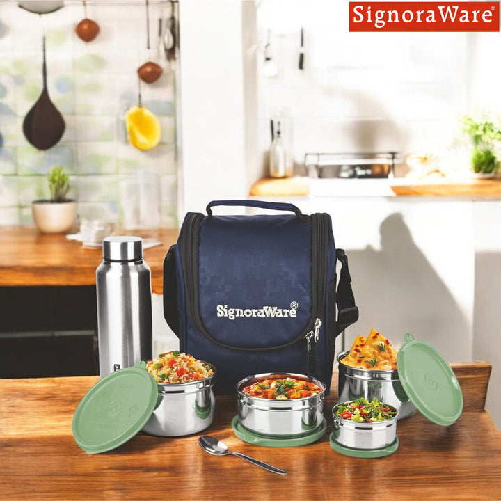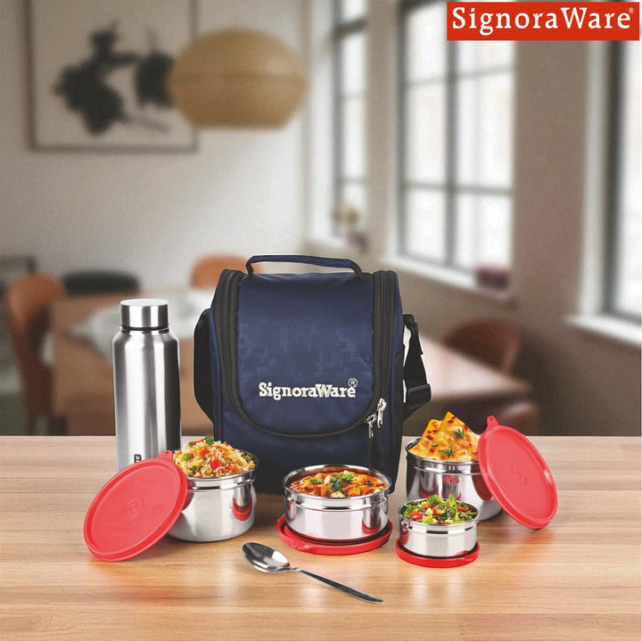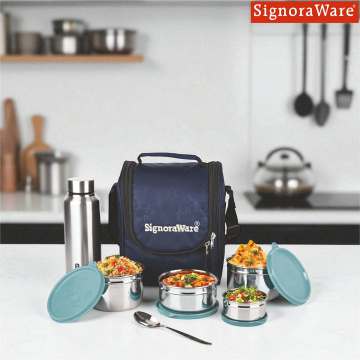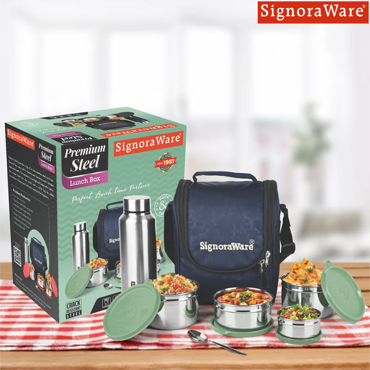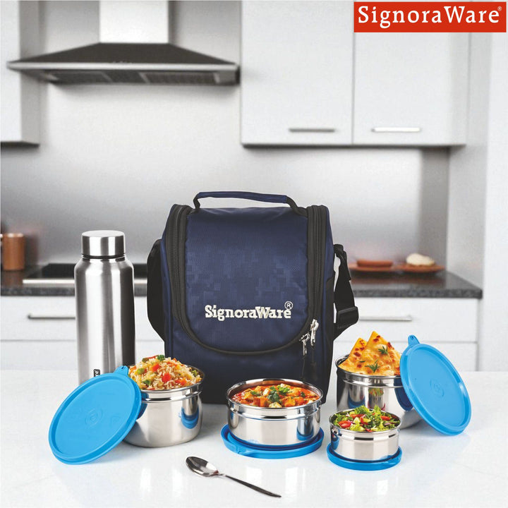 • HIGH QUALITY MATERIAL : High quality BPA FREE virgin plastic Lids and stainless steel, durable, rust-proof containers. It creates a safe and healthy food storage container for you. Signoraware Lunch Box is made using only the best quality durable stainless steel construction .