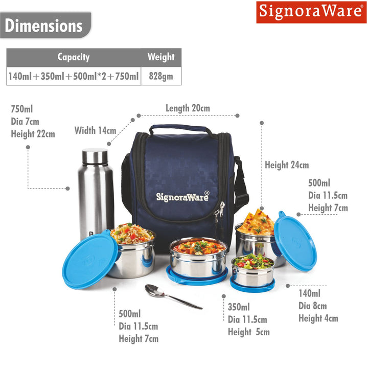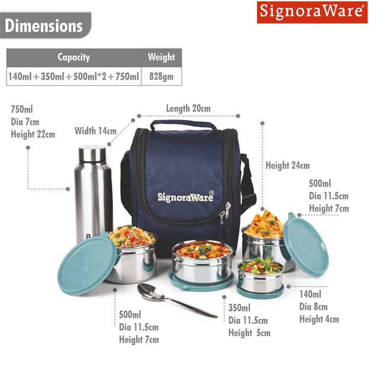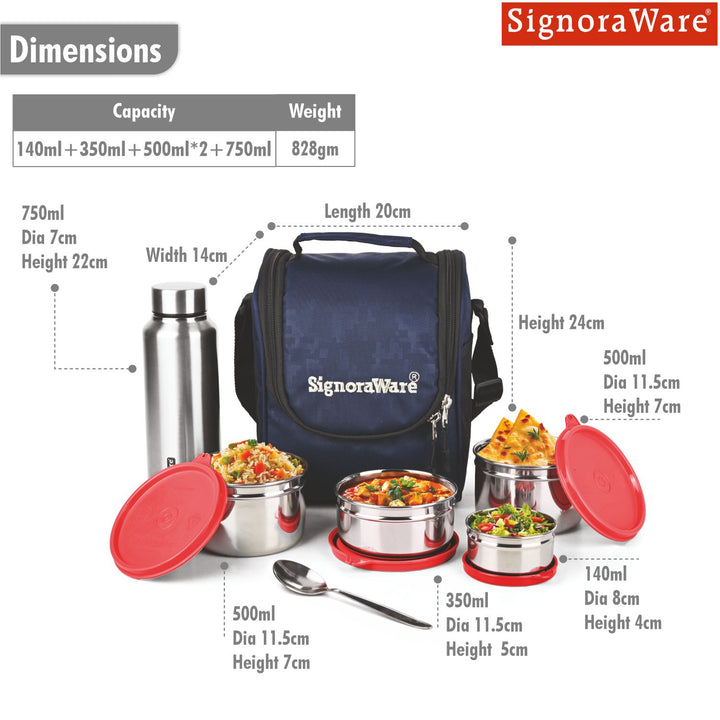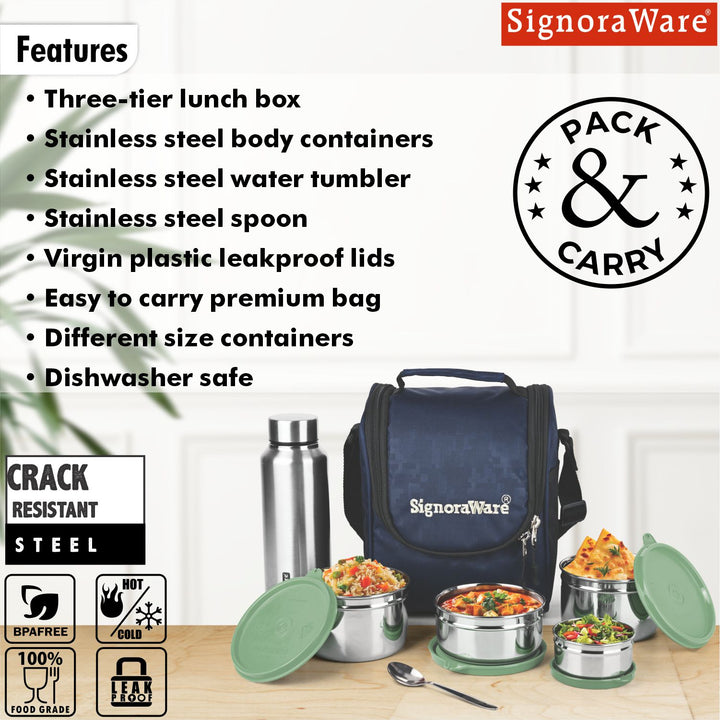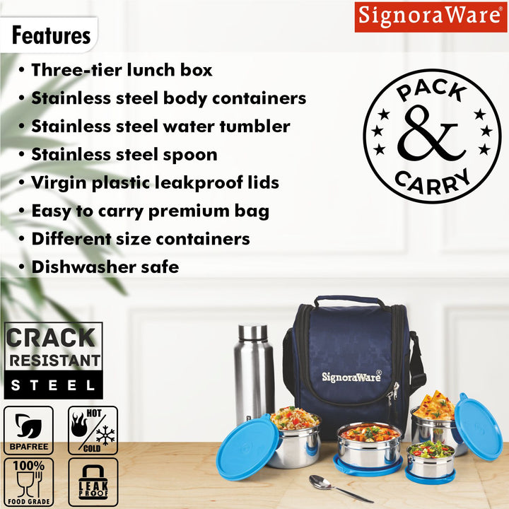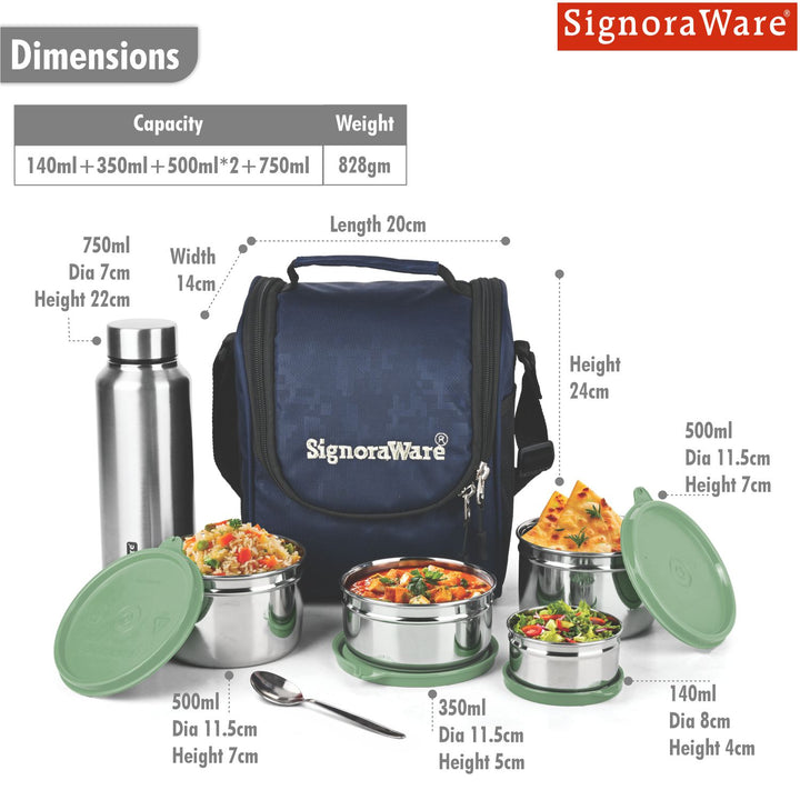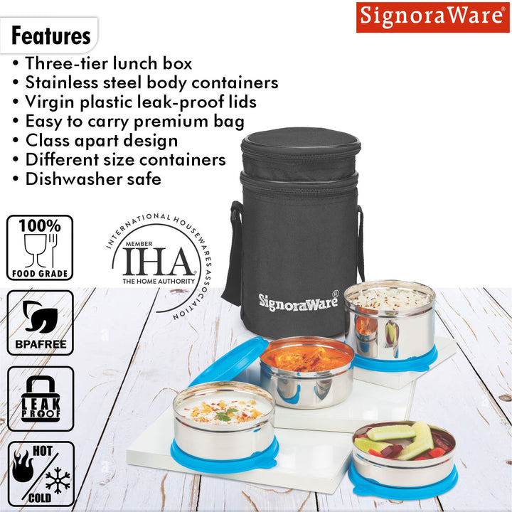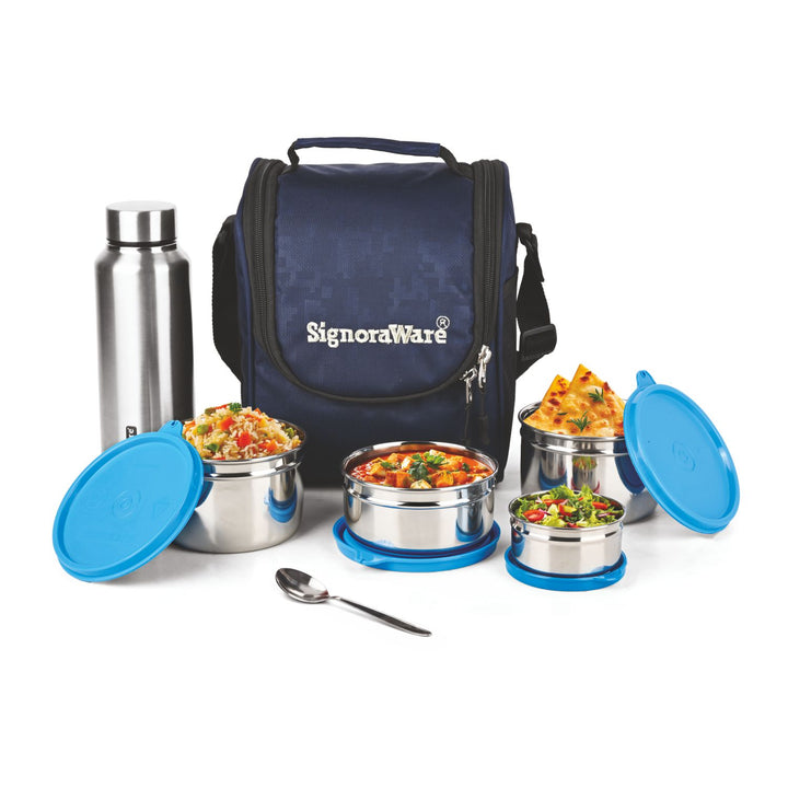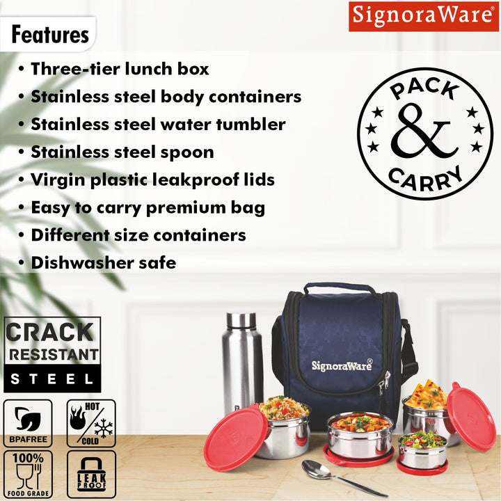 • HIGH QUALITY MATERIAL : High quality BPA FREE virgin plastic Lids and stainless steel, durable, rust-proof containers. It creates a safe and healthy food storage container for you. Signoraware Lunch Box is made using only the best quality durable stainless steel construction .