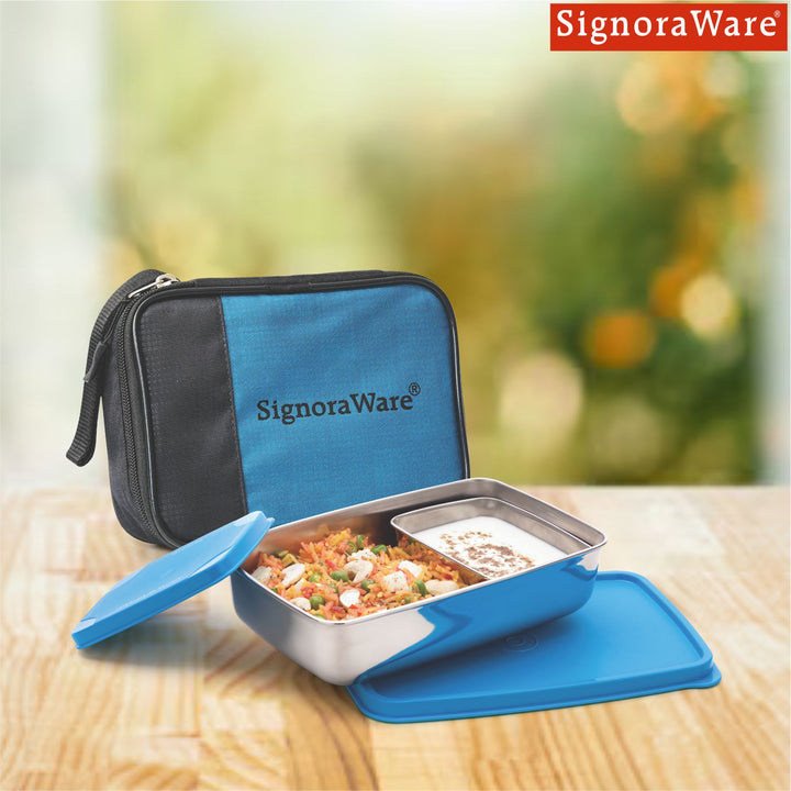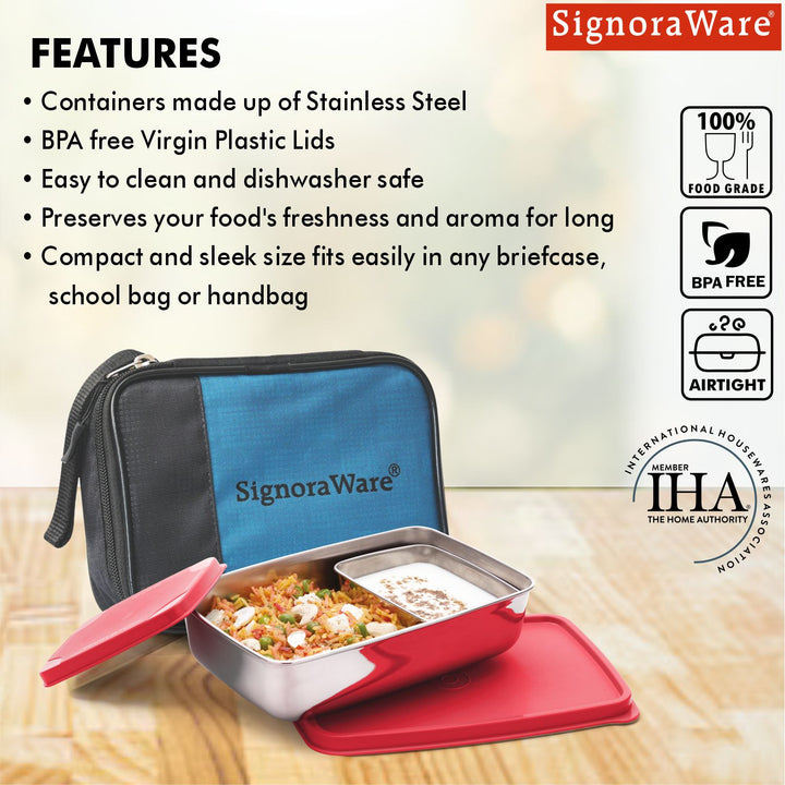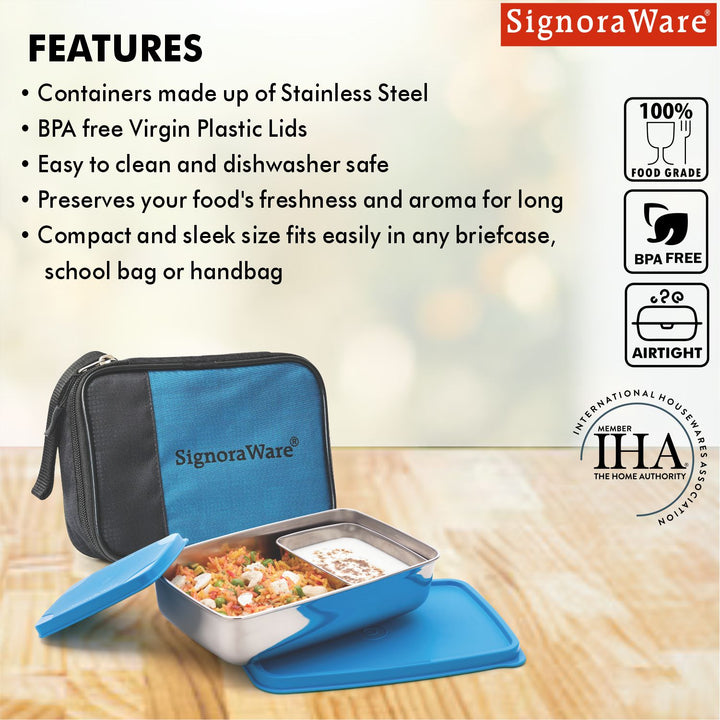 - LEAK AND SPILL PROOF - Lunch Box With 2 containers enables to Prevent the Different Foods Mixing Together and Could Maintain the Original Taste of the Food. Our Tiffin Lunch Box Containers Uses Food Grade Safe Material which is Safe. Our Lunch Box has Airtight Lids.