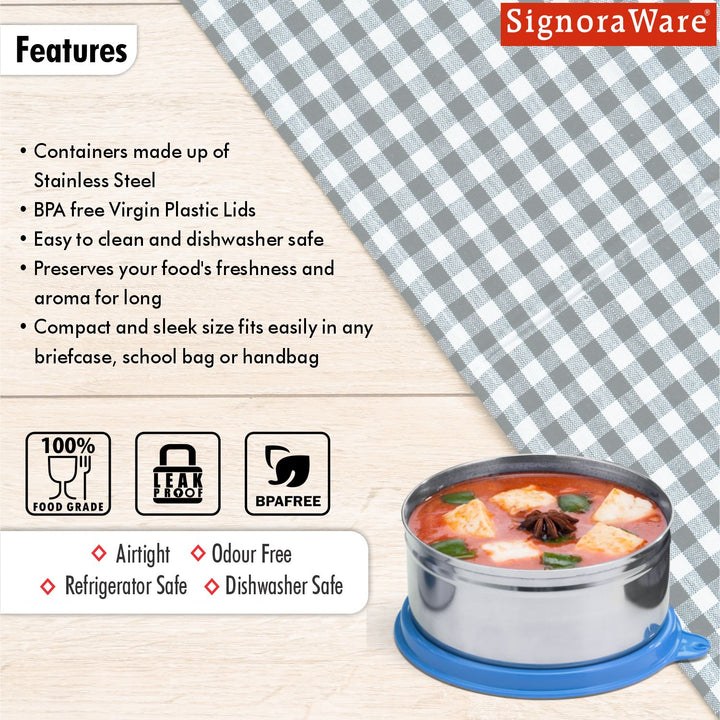 - Spill proof, leak proof and airtight containers that keeps food fresh for hours