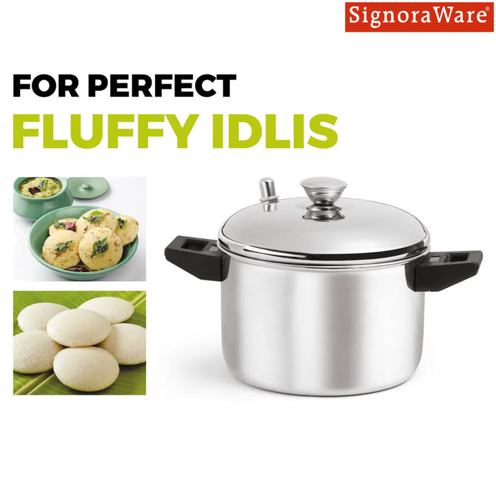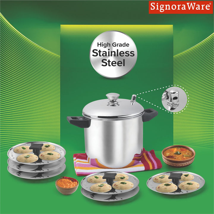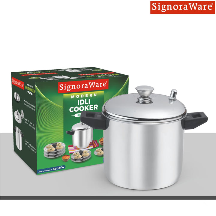- MODERN COOKWARE ALL AROUND: Signoraware’s Modern Idli Cooker is the best Cookware for medium size families to get served in morning tiffins. The Idli Cooker is made by the finest stainless steel material which ensures strength, quality and durability. Our Modern Idli Cooker’s design and finishing will make a wonderful experience in regular use. This add more taste for good health to your family. Excellent Quality Stainless Steel Idli Maker. Our Modern Idli Cooker is a great cooker for cooking healthy and nutritious South Indian food. Be ready to experience the most hygienic and easiest way of preparing any variety of Idli. It is made from premium quality stainless steel and is highly durable.