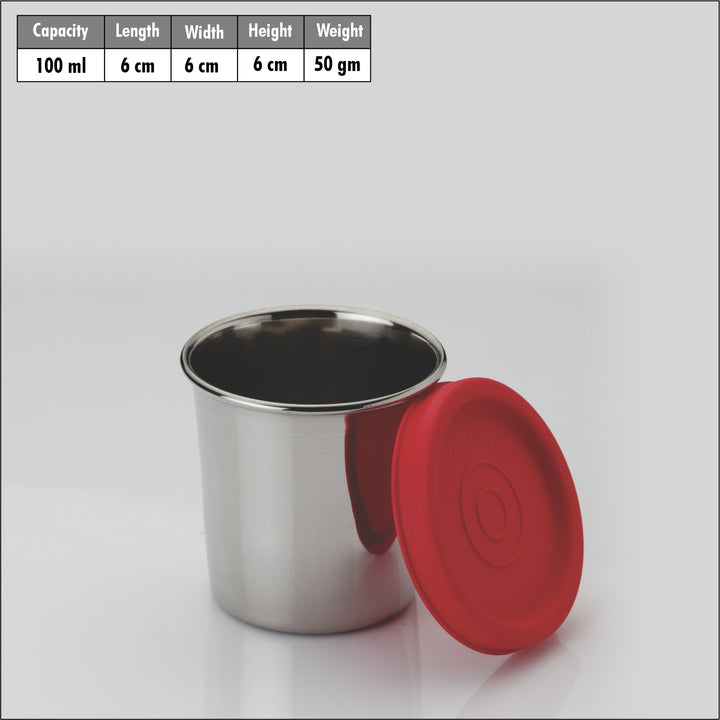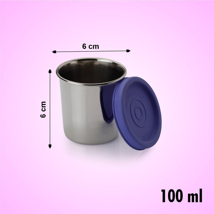 - Material Description: Dimension : 6cm x 6cm x 6cm | Capacity : 100ml+100ml | The Signoraware Nano containers are made from high-quality stainless steel, ensuring durability and resistance to corrosion. This material is food-safe and will not leach chemicals into your stored items. The lids are made of a durable, BPA-free plastic to provide a secure seal.