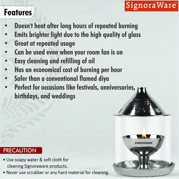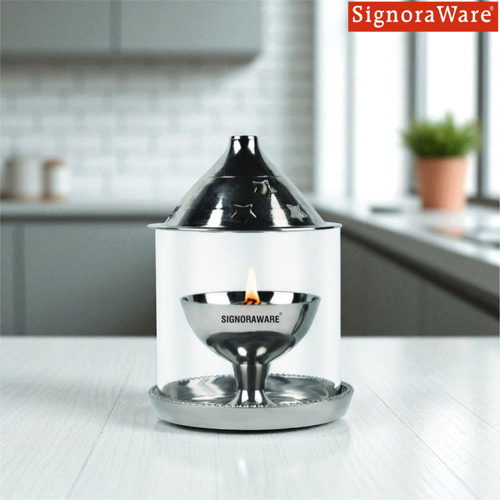 Safe & Practical: The glass cover not only adds elegance but also makes it safe for indoor use by preventing accidental flame exposure.