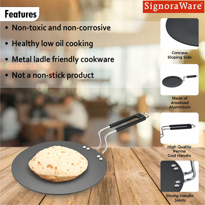Opulent Hard Anodised Concave Parantha / Roti Tawa 22cm