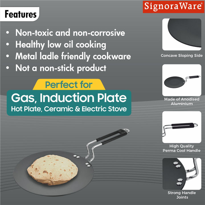 Opulent Hard Anodised Concave Parantha / Roti Tawa 28 cm