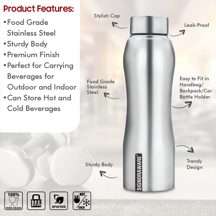 Answer: Yes, Signoraware Steel Water Bottle is leak-proof and designed to prevent spills and leaks.