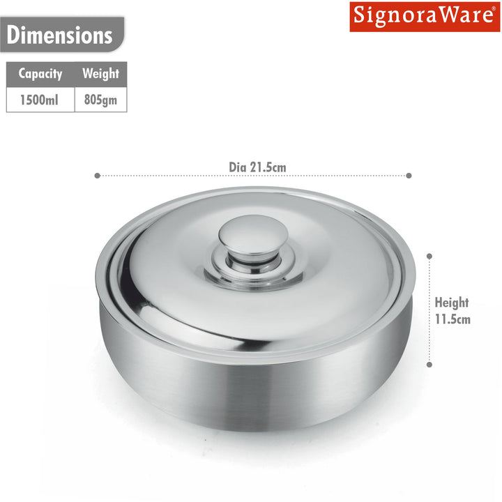 - SERVE HOT & FRESH : Ideal for daily food servings, especially for fresh and hot rotis. Sleek look and mirror finish body adds beauty to your kitchen. Serve piping hot idlis, puris, parathas, curries, pasta and much more with Signoraware’s Roti Server/Casserole. For best results season it with warm water before pouring any curry.