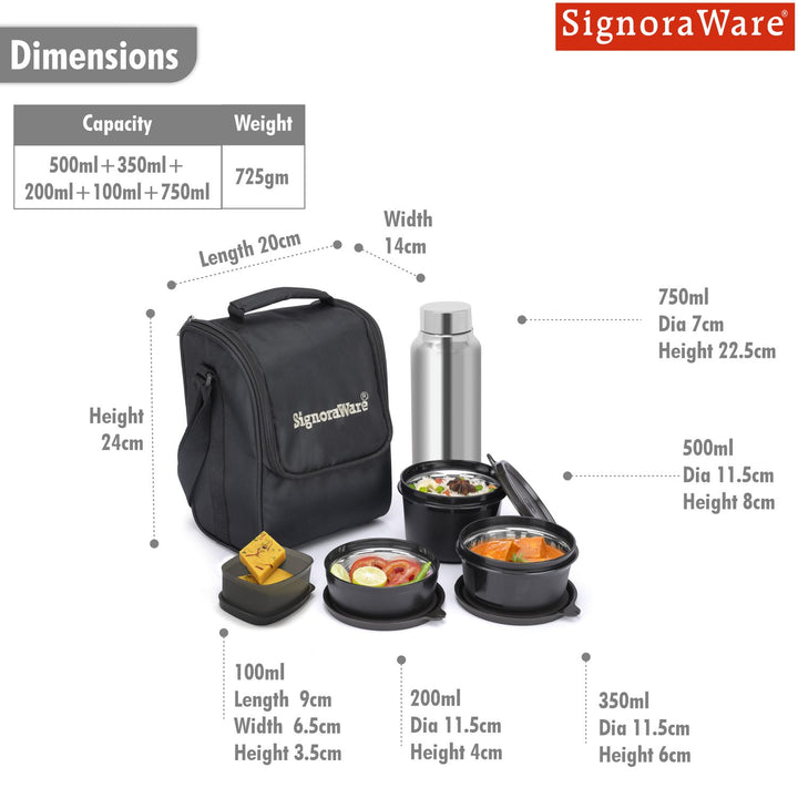 500 ml + 350 ml + 200 ml + 100 ml + Bottle 700 ml