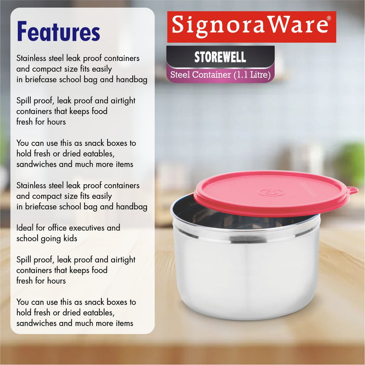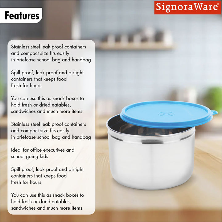 - Spill proof, leak proof and airtight containers that keeps food fresh for hours
