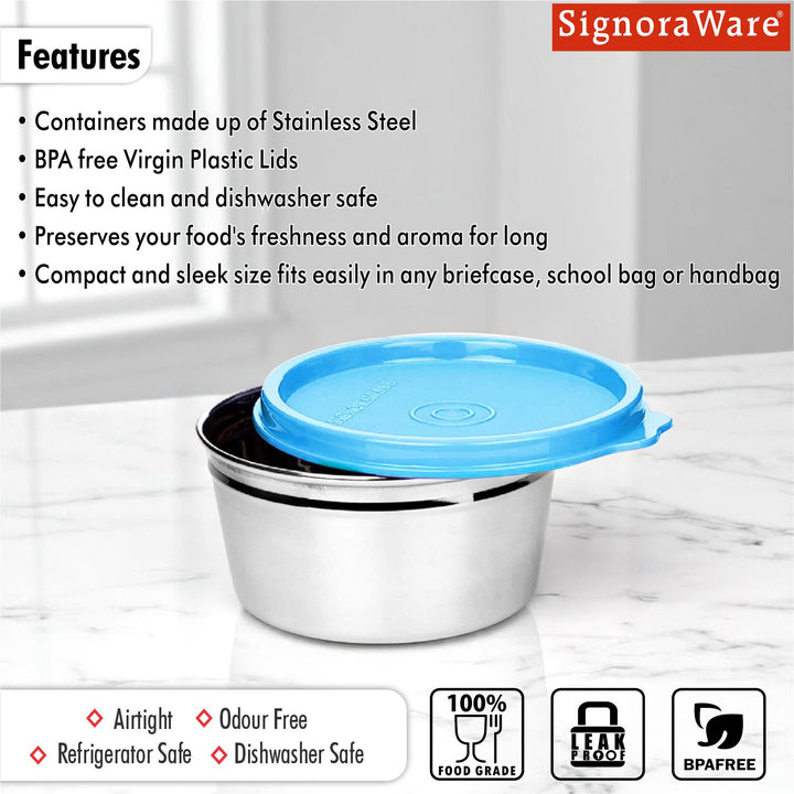 - Spill proof, leak proof and airtight containers that keeps food fresh for hours