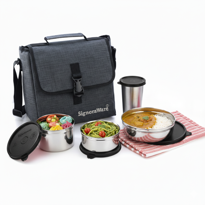 - Ideal for office executives and school going kids ; Ideal Usage: School, Office ; Unique insulated bag keeps food warm for hours, Non-cracking, superior quality stainless steel